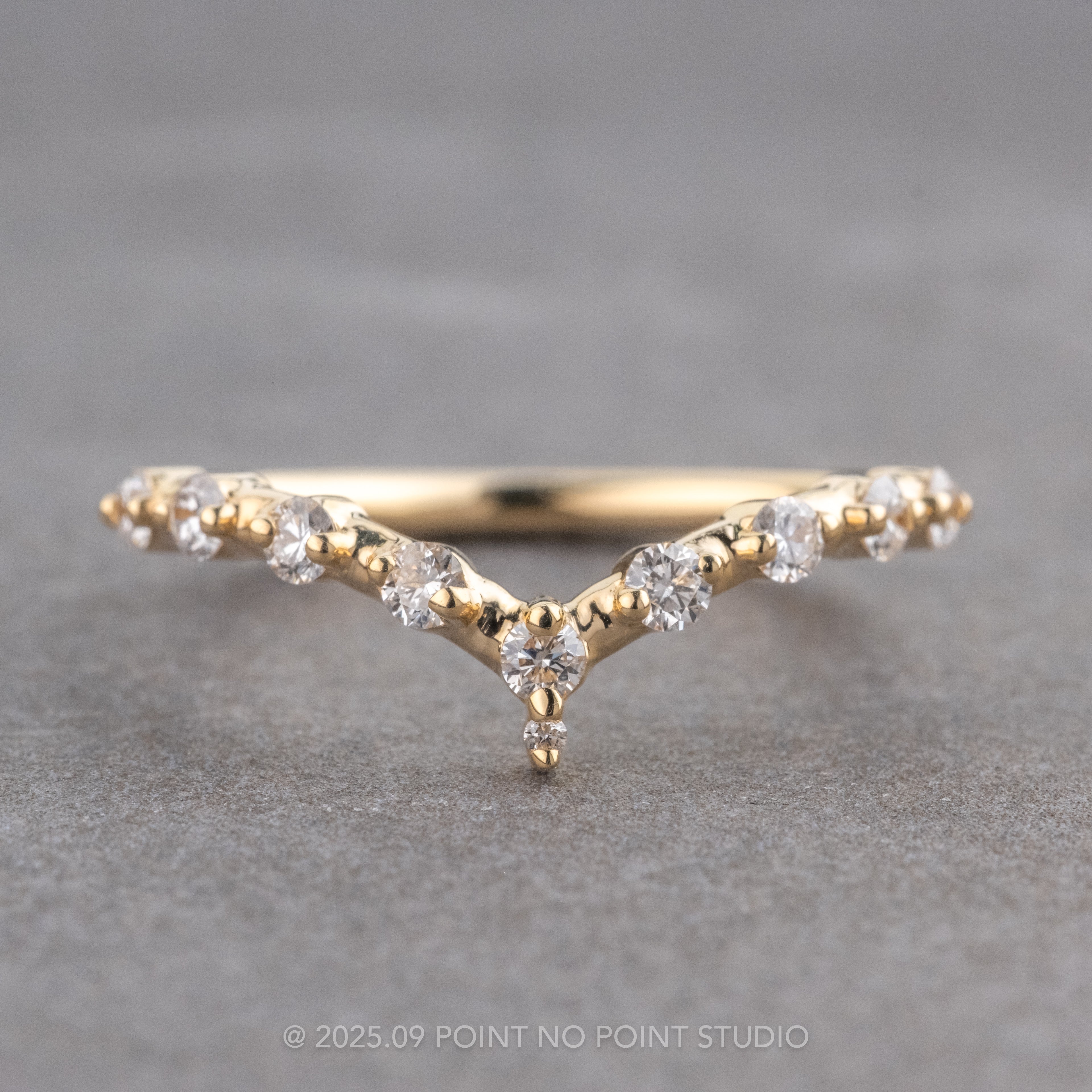 Round Diamond V-Contour Wedding Band, Nova Setting, 14K Yellow Gold