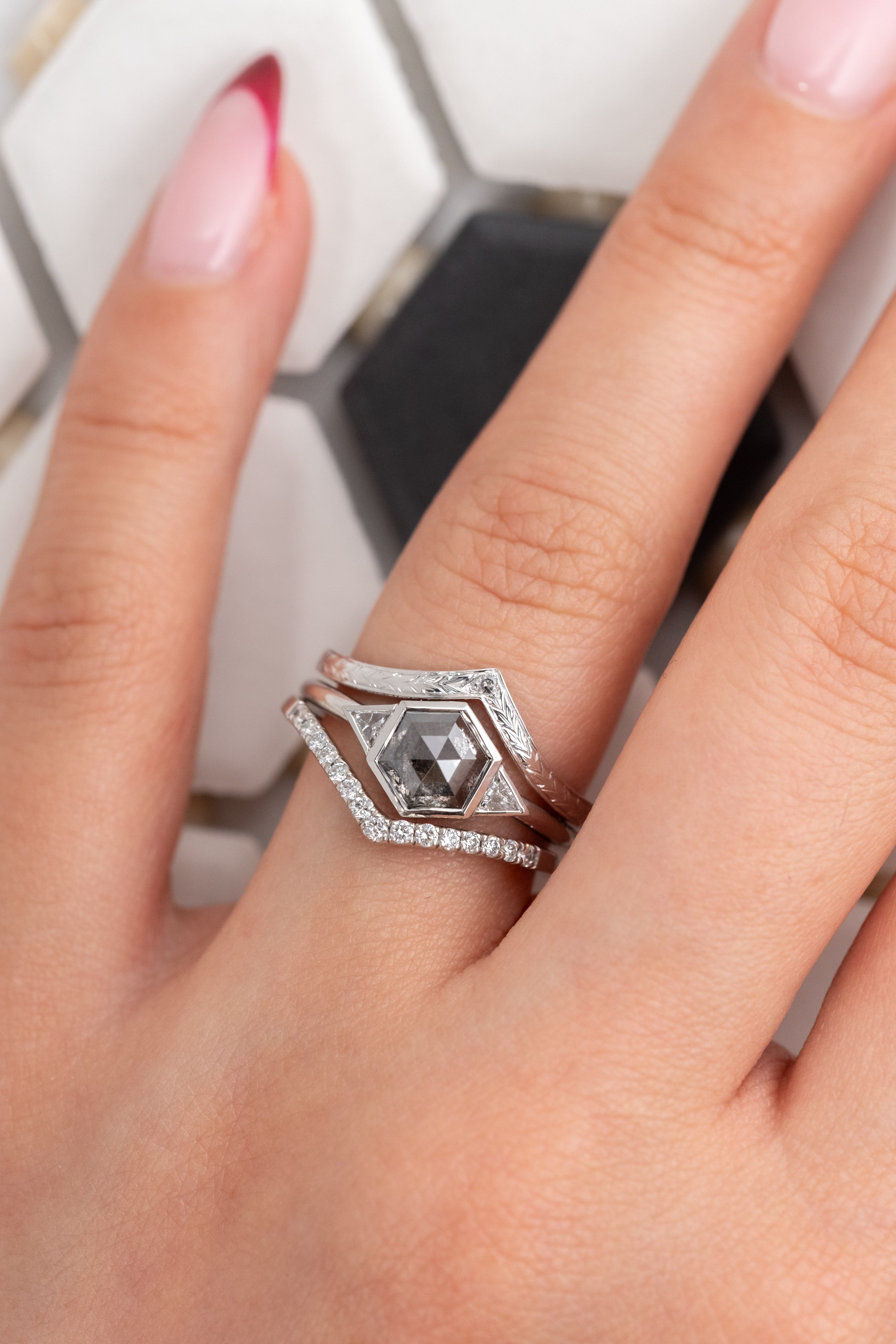 **Reach out to info@pointnopointstudio.com and let us know if you have an engagement ring from us that you would like this to contour to.