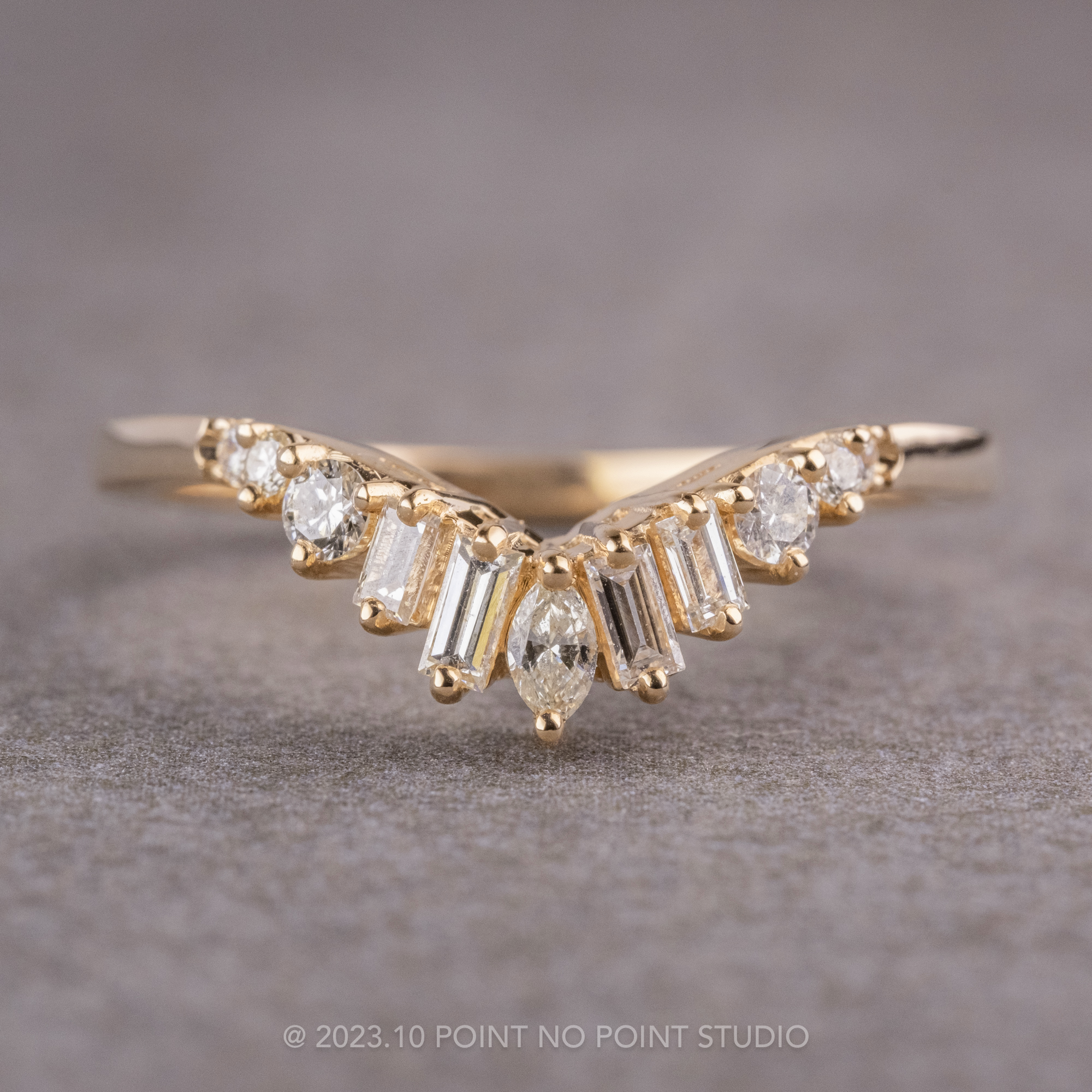 **Reach out to info@pointnopointstudio.com and let us know if you have an engagement ring from us that you would like this to contour to.