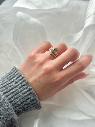 Flora Wedding Ring, 9 White & Salt and Pepper Diamond, Loaf Band