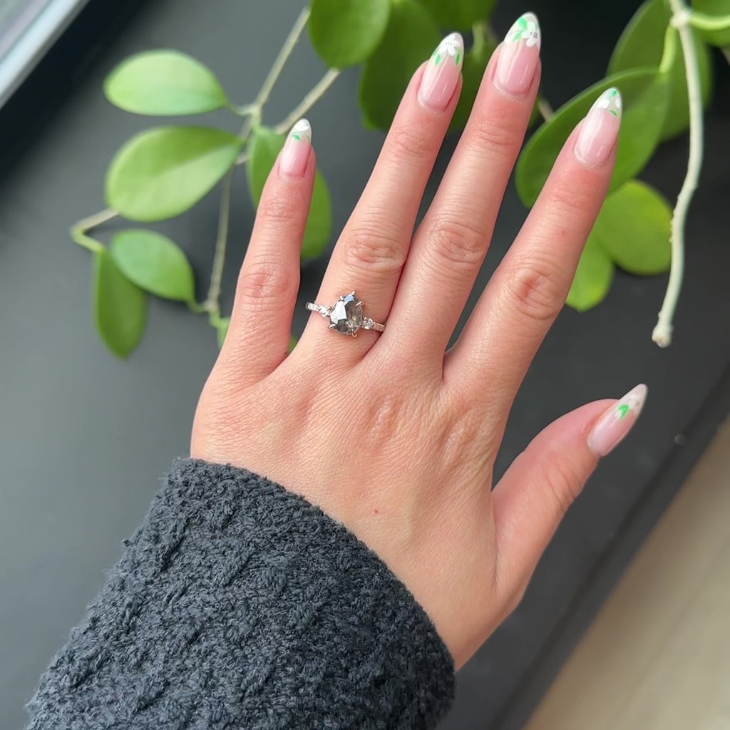 1.22 Carat Black Pear Diamond Engagement Ring, Eliza Setting, 14K Rose Gold