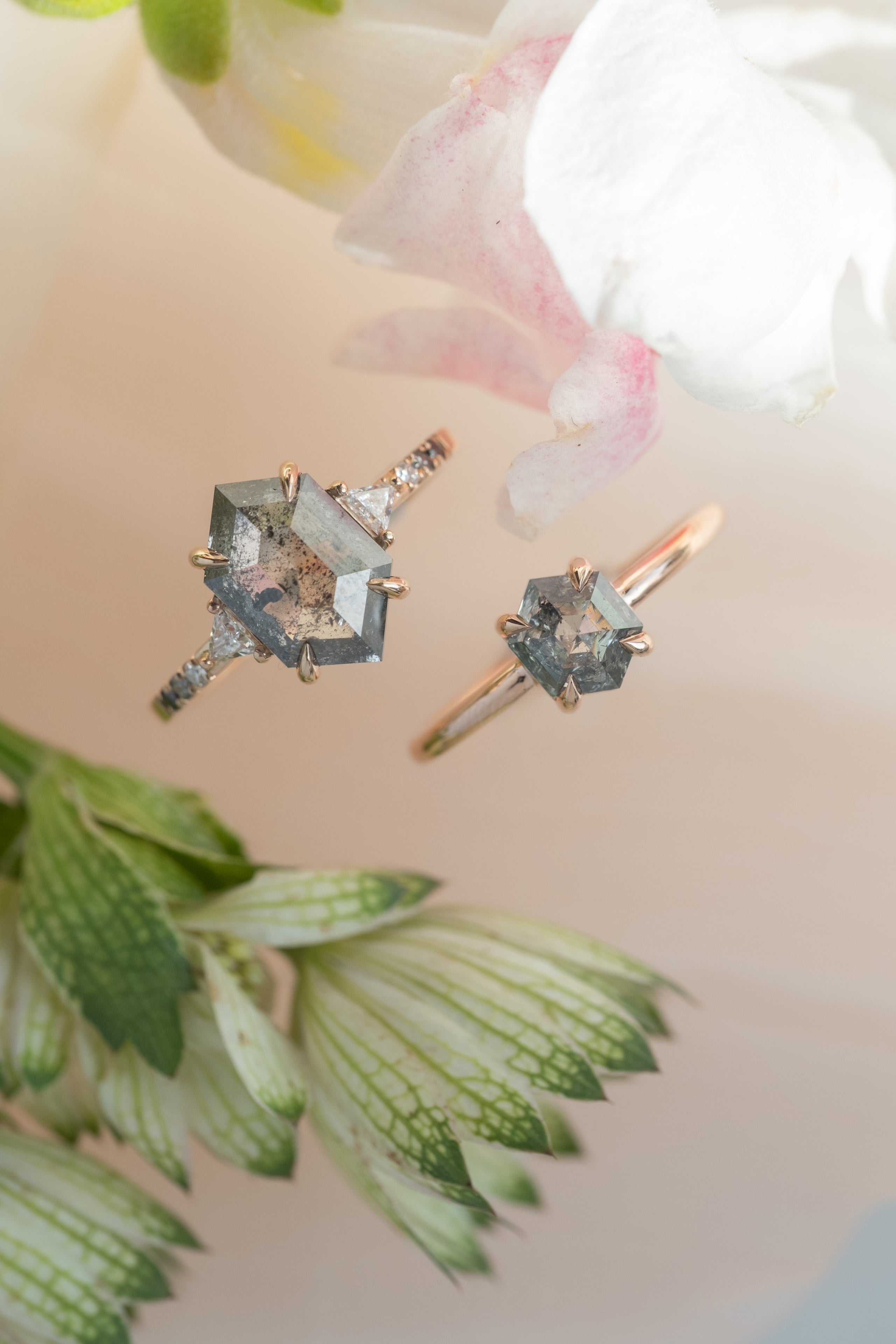 Salt and Pepper Hexagon Diamond Engagement Ring