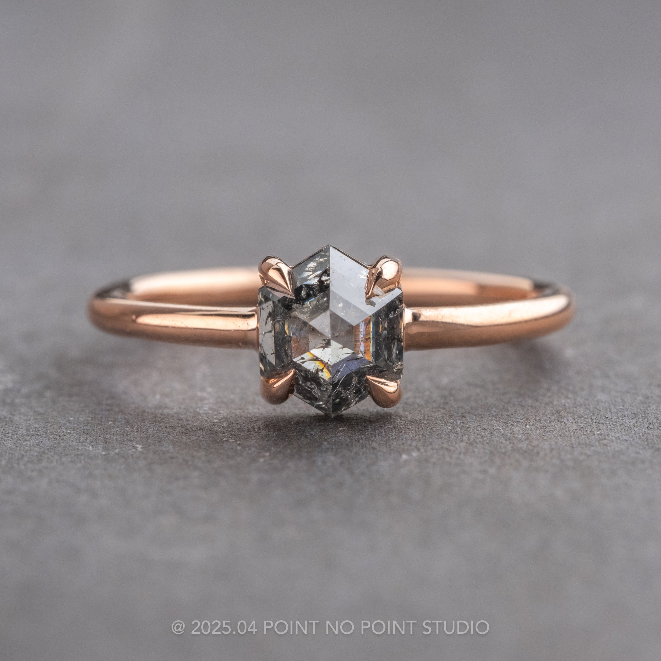 1.31 Carat Salt and Pepper Hexagon Diamond Engagement Ring, Jane Setting, 14k Rose Gold