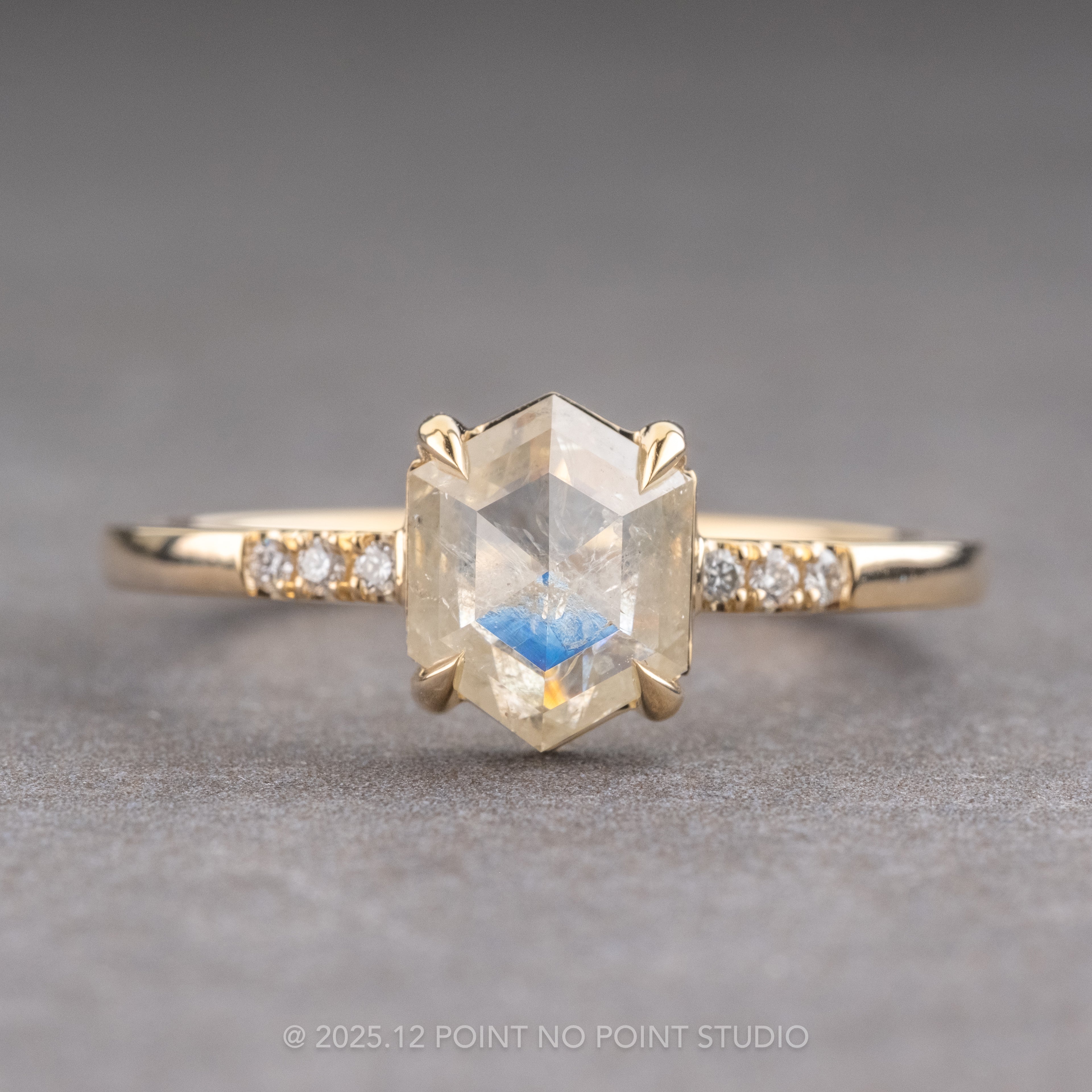 1.34 Carat Icy White Hexagon Diamond Engagement Ring, Jules Setting, 14K Yellow Gold