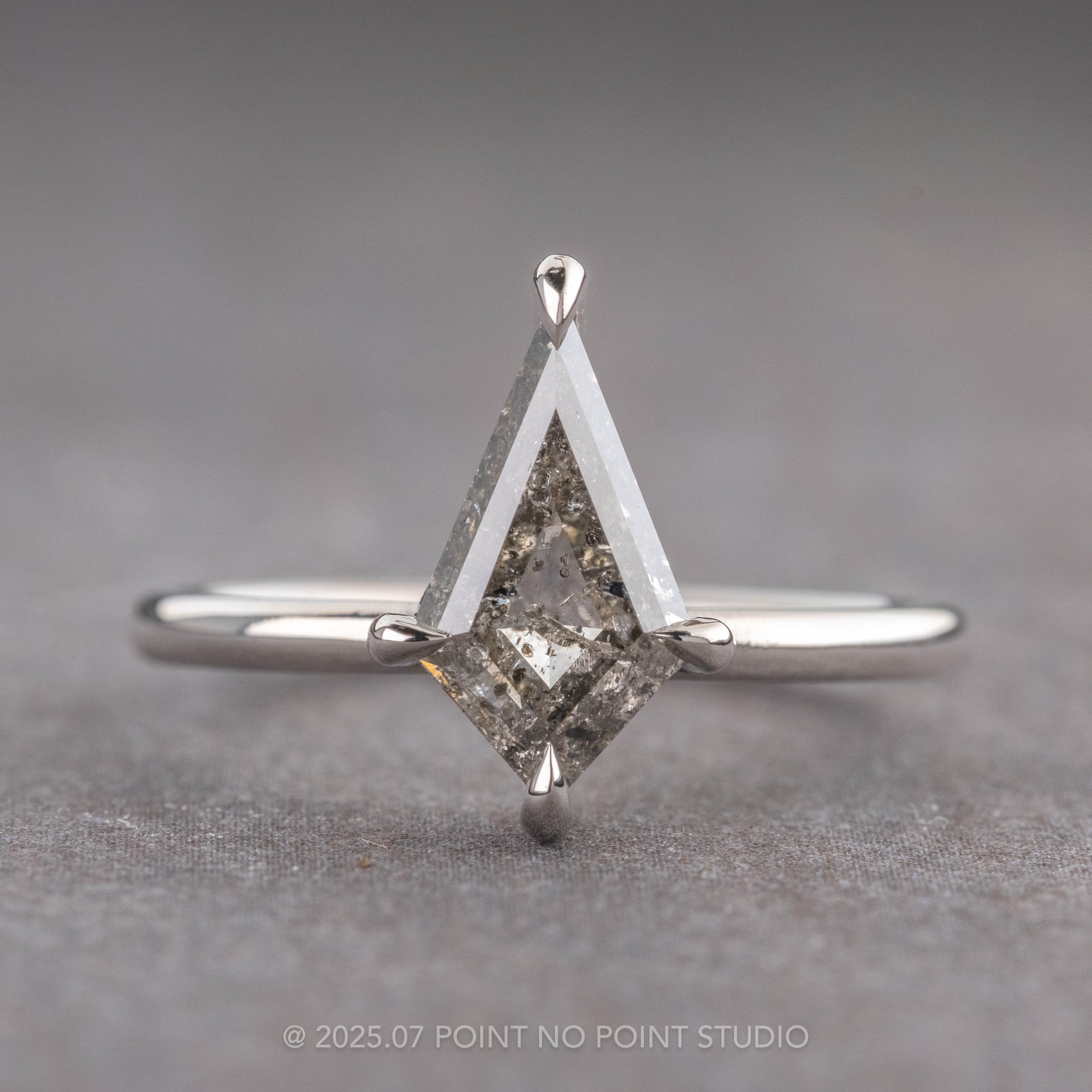 1.35 Carat Canadian Salt and Pepper Kite Diamond Engagement Ring, Basket Jane Setting, Platinum