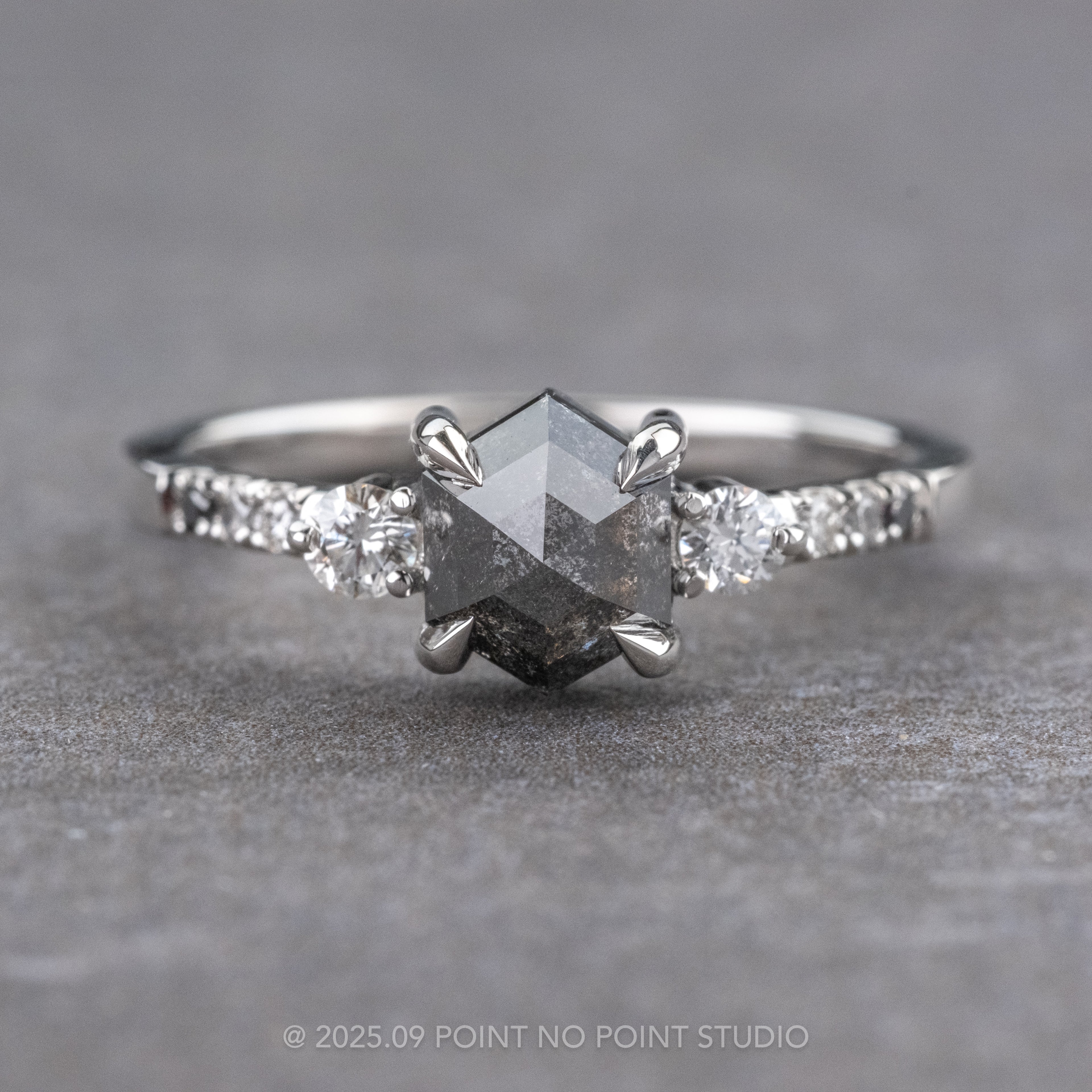 1.38 Carat Black Speckled Hexagon Diamond Engagement Ring, Ombre Eliza Setting, Platinum