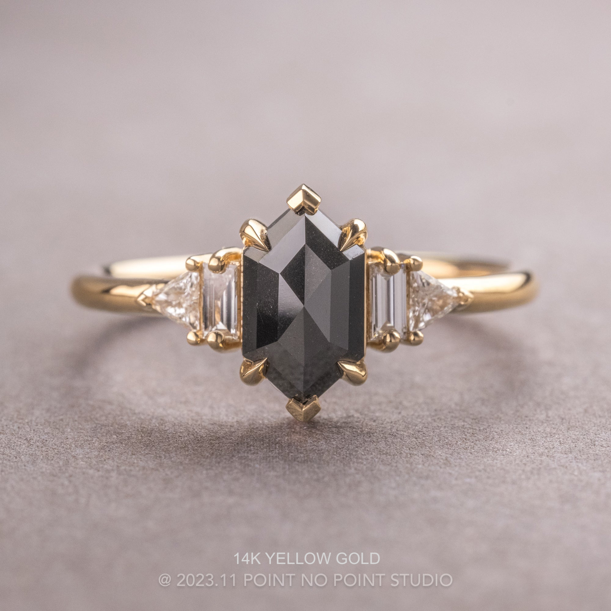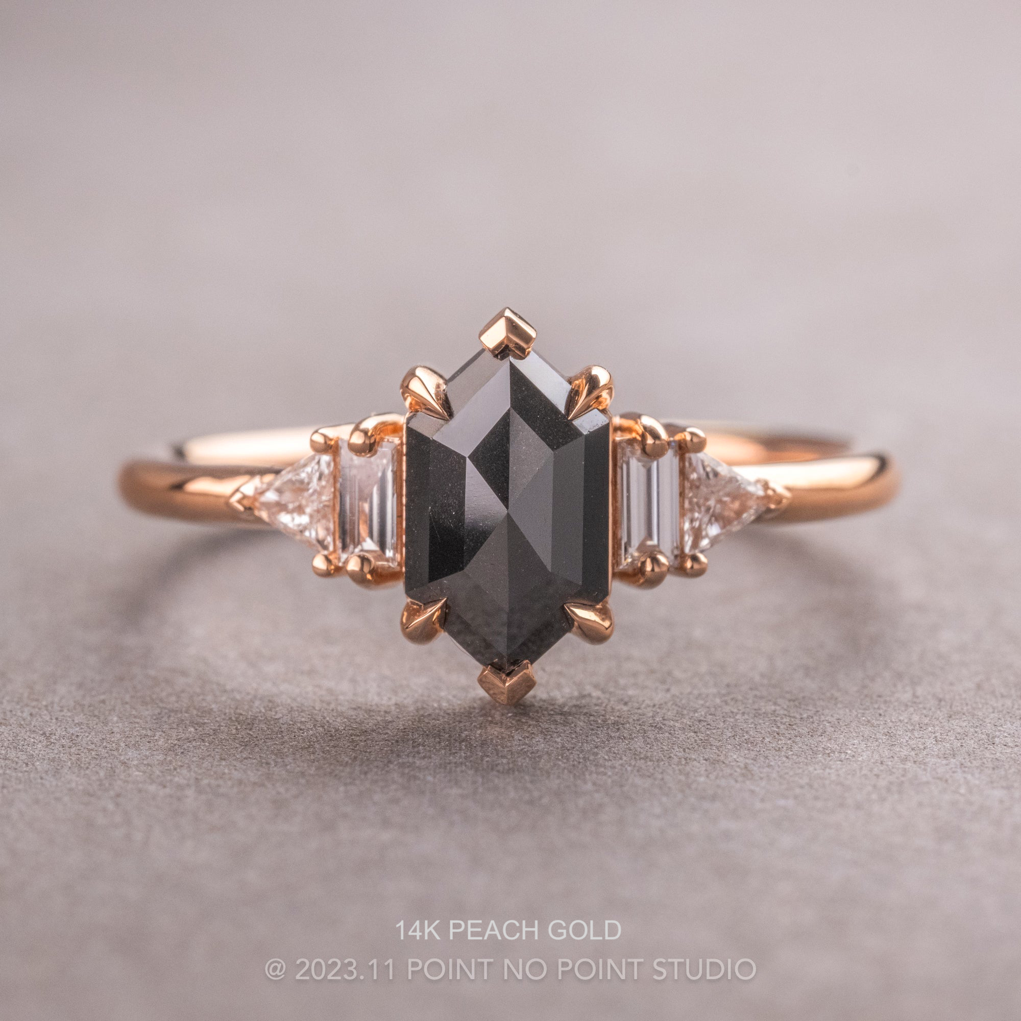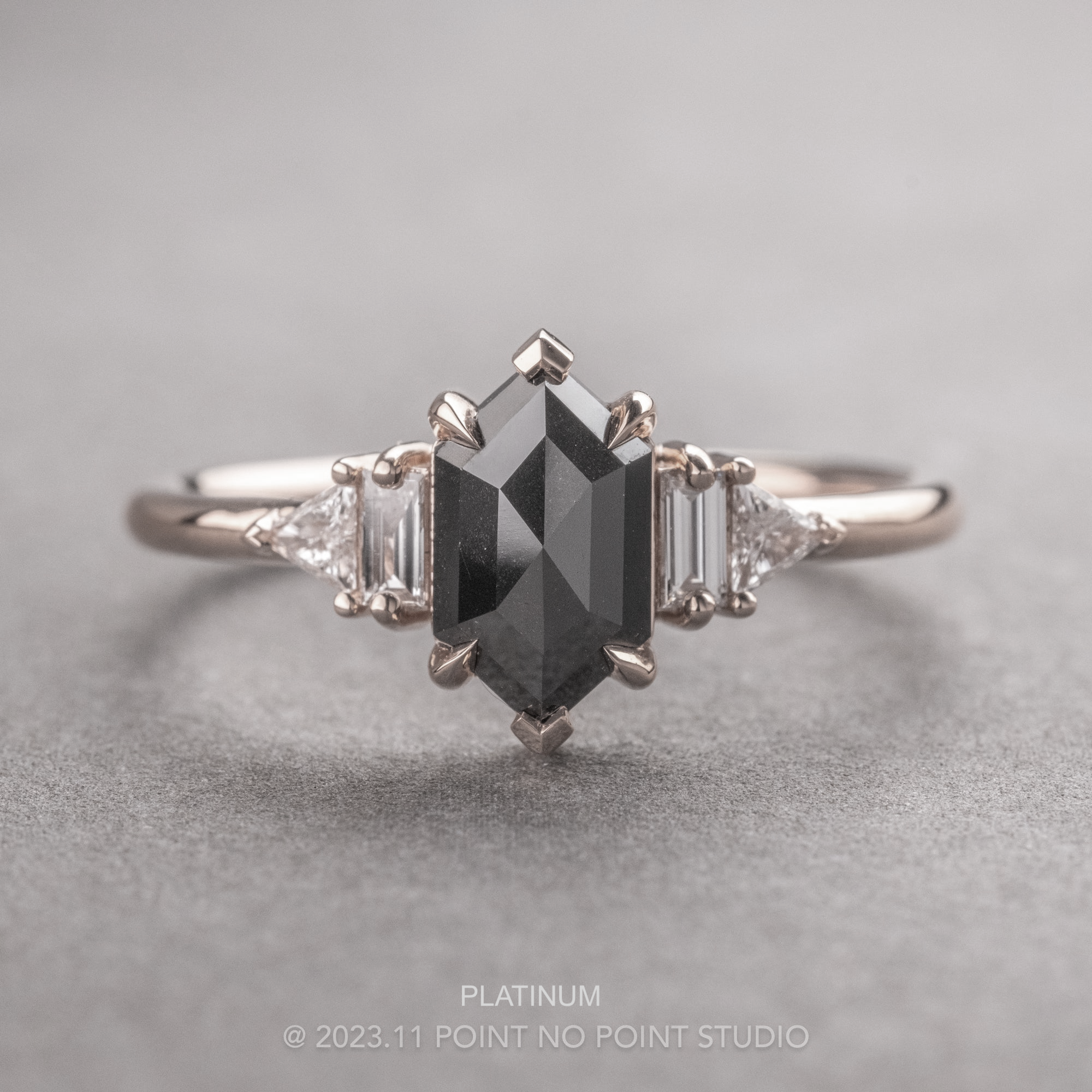 1.49 Carat Black Hexagon Diamond Engagement Ring, Beatrice Setting