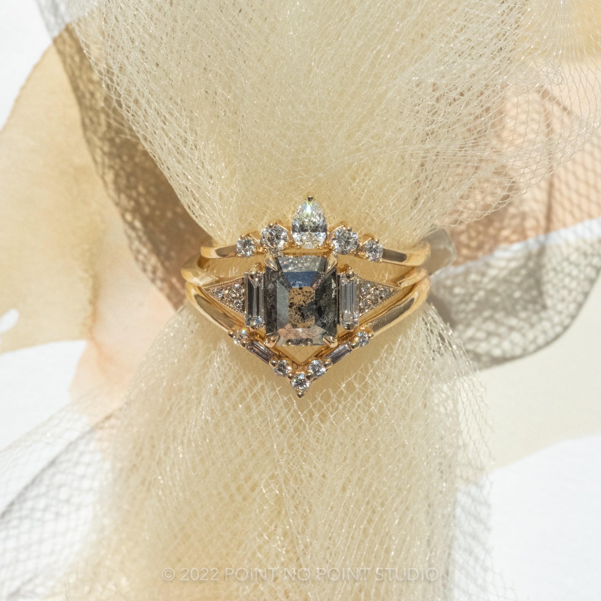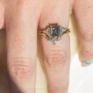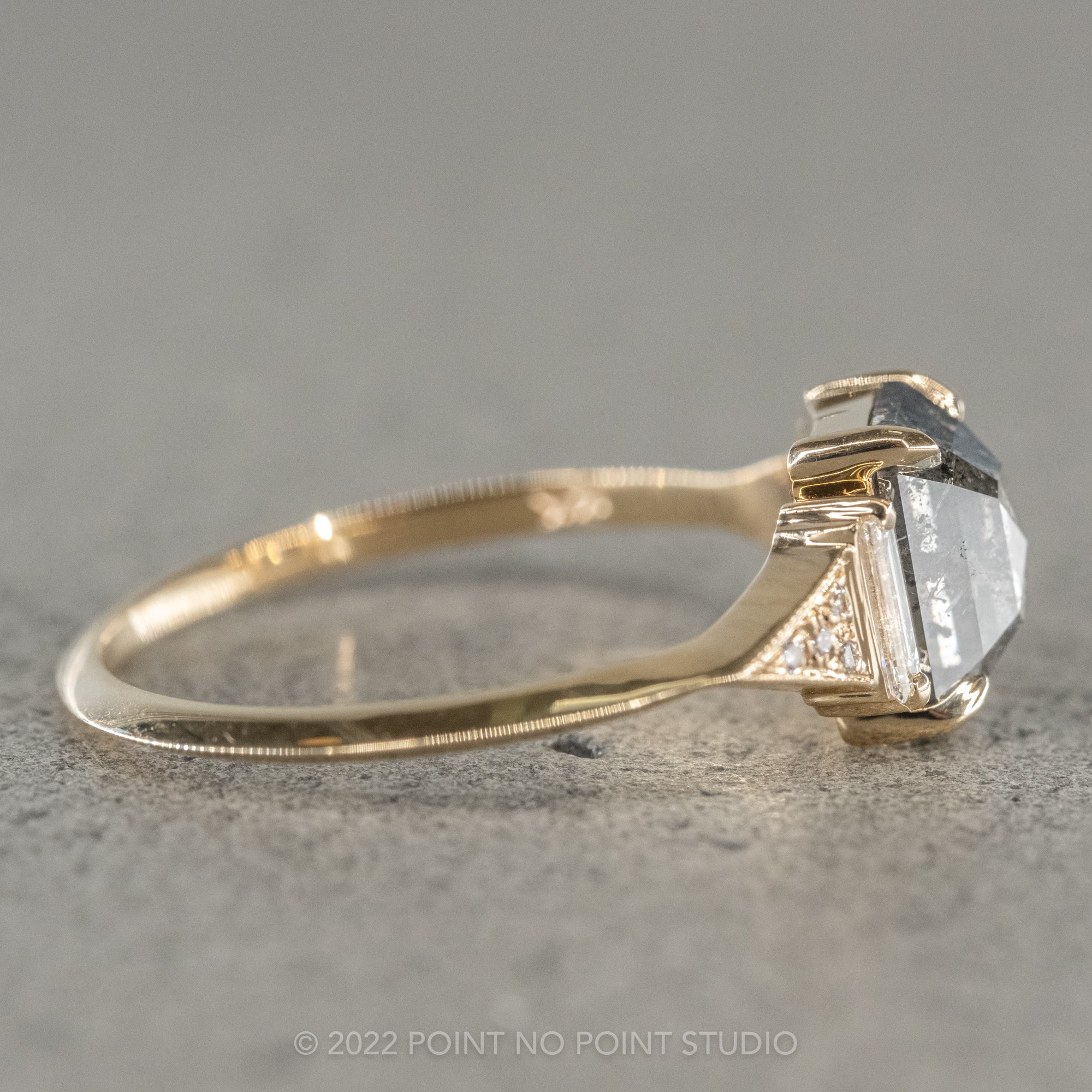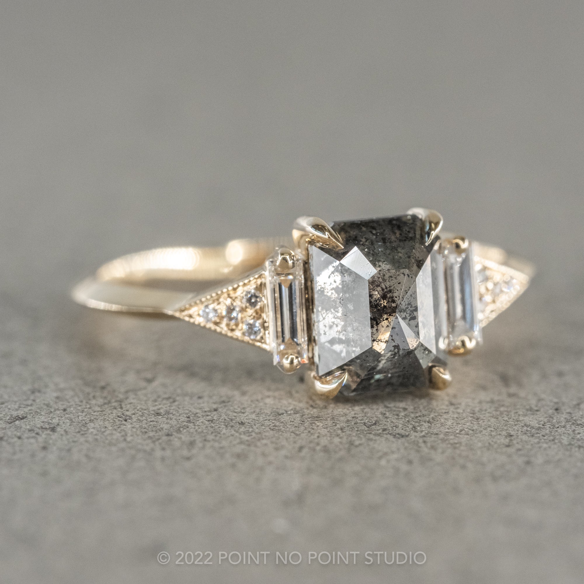 1.35 Carat Salt and Pepper Emerald Diamond Engagement Ring, Azalea Setting, 14K Yellow Gold