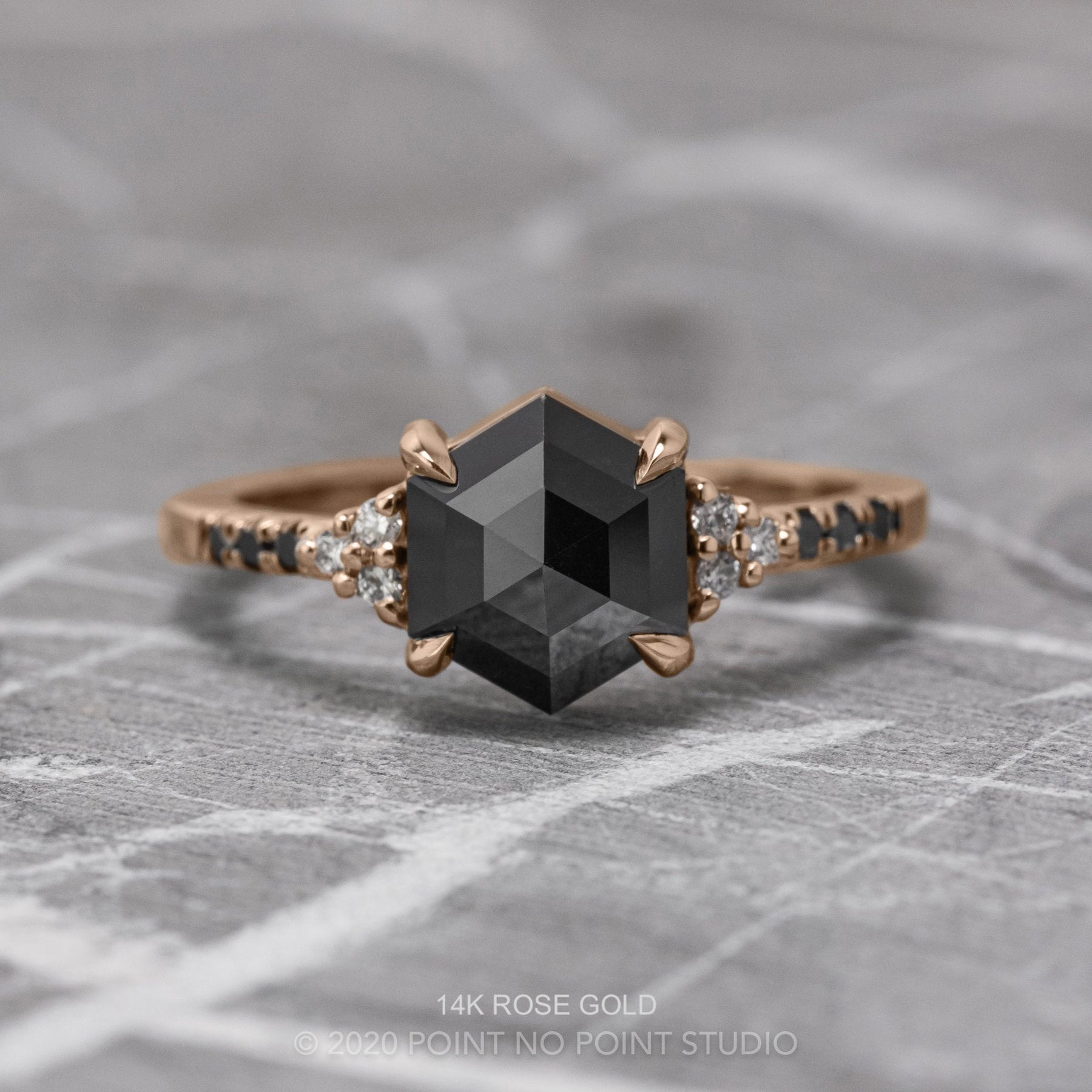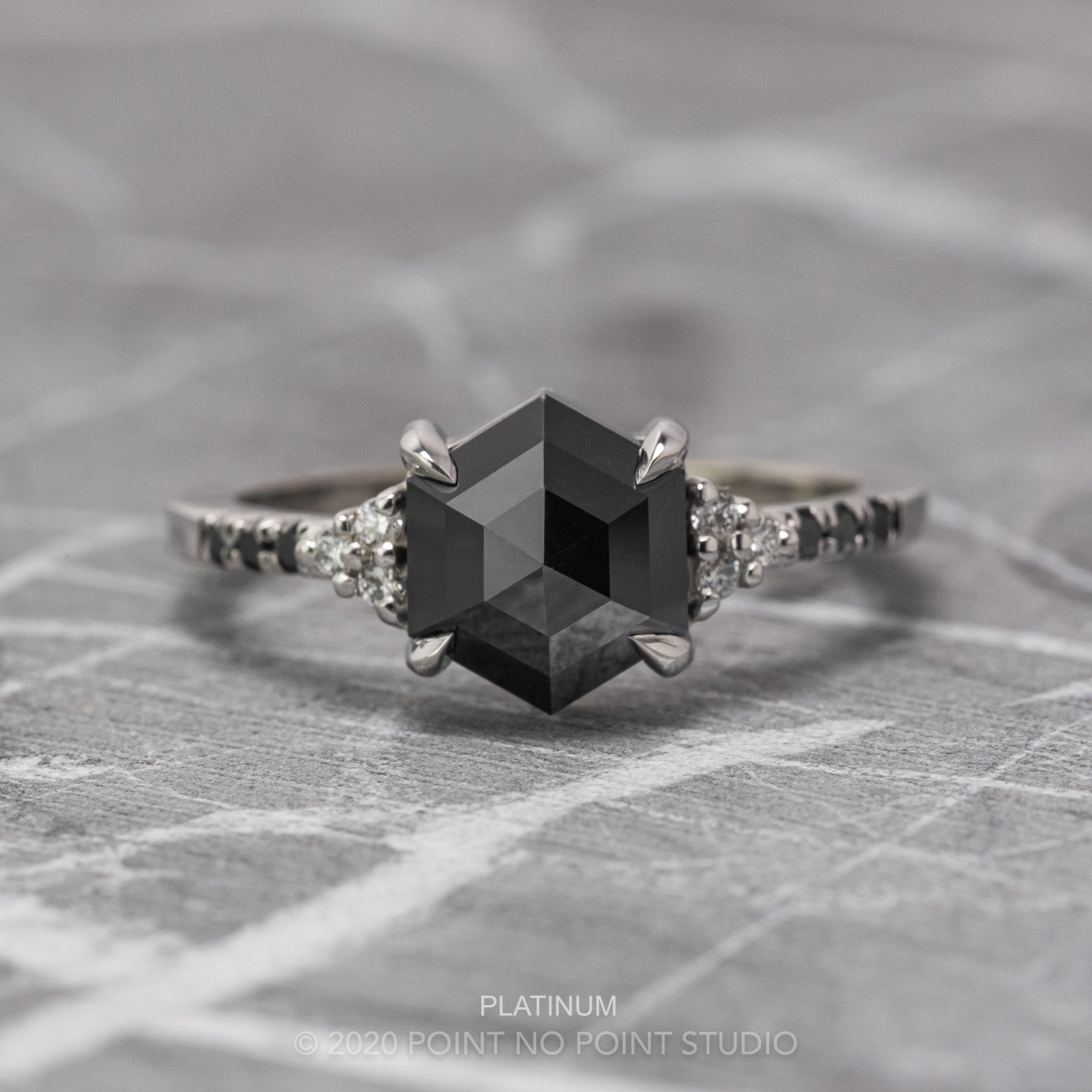 1.75 Carat Black Hexagon Diamond Engagement Ring, Quincy Setting
