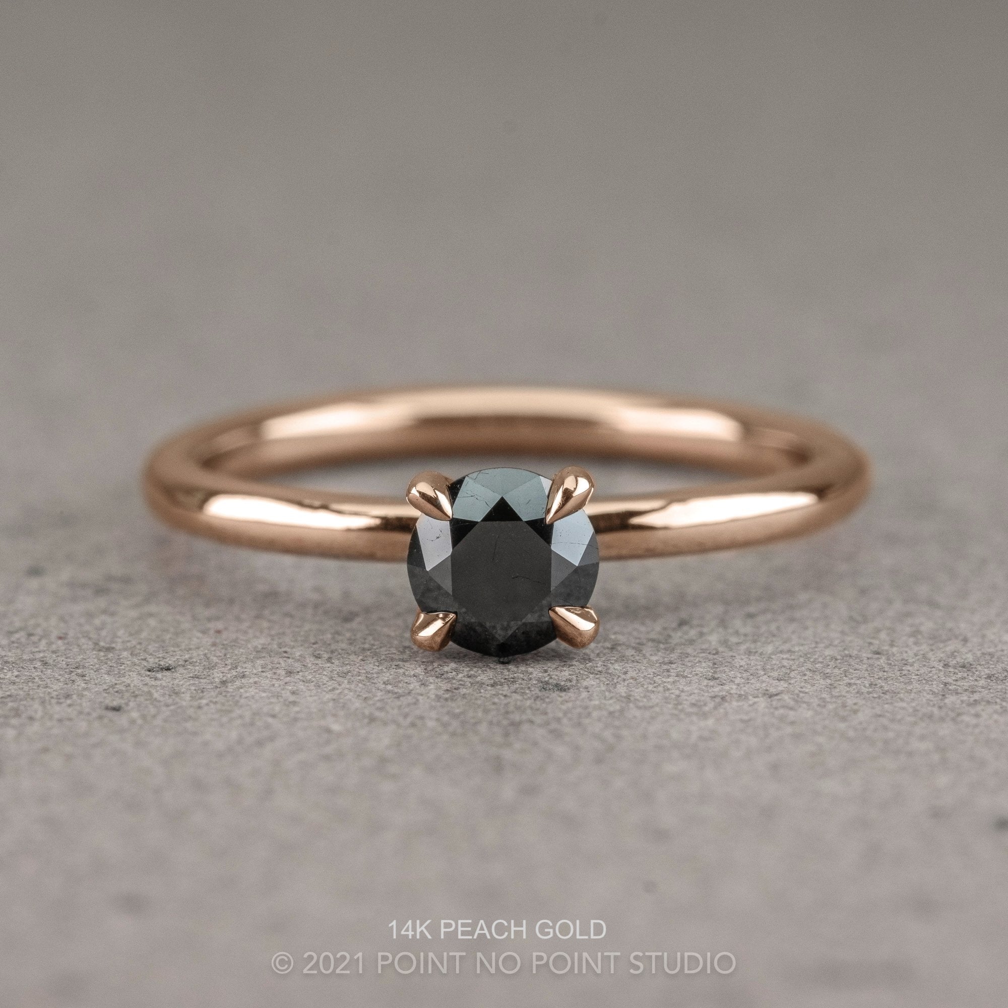 .50 Carat Round Brilliant Cut Black Diamond Engagement Ring, Tulip Jane Setting