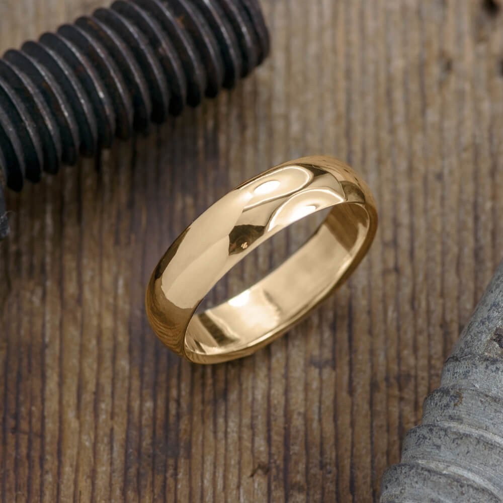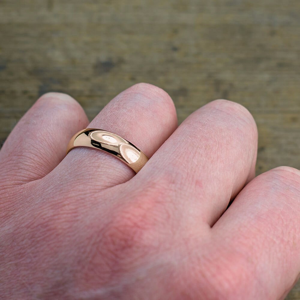 6mm 14k Peach Gold Mens Wedding Band, Half Round Polished