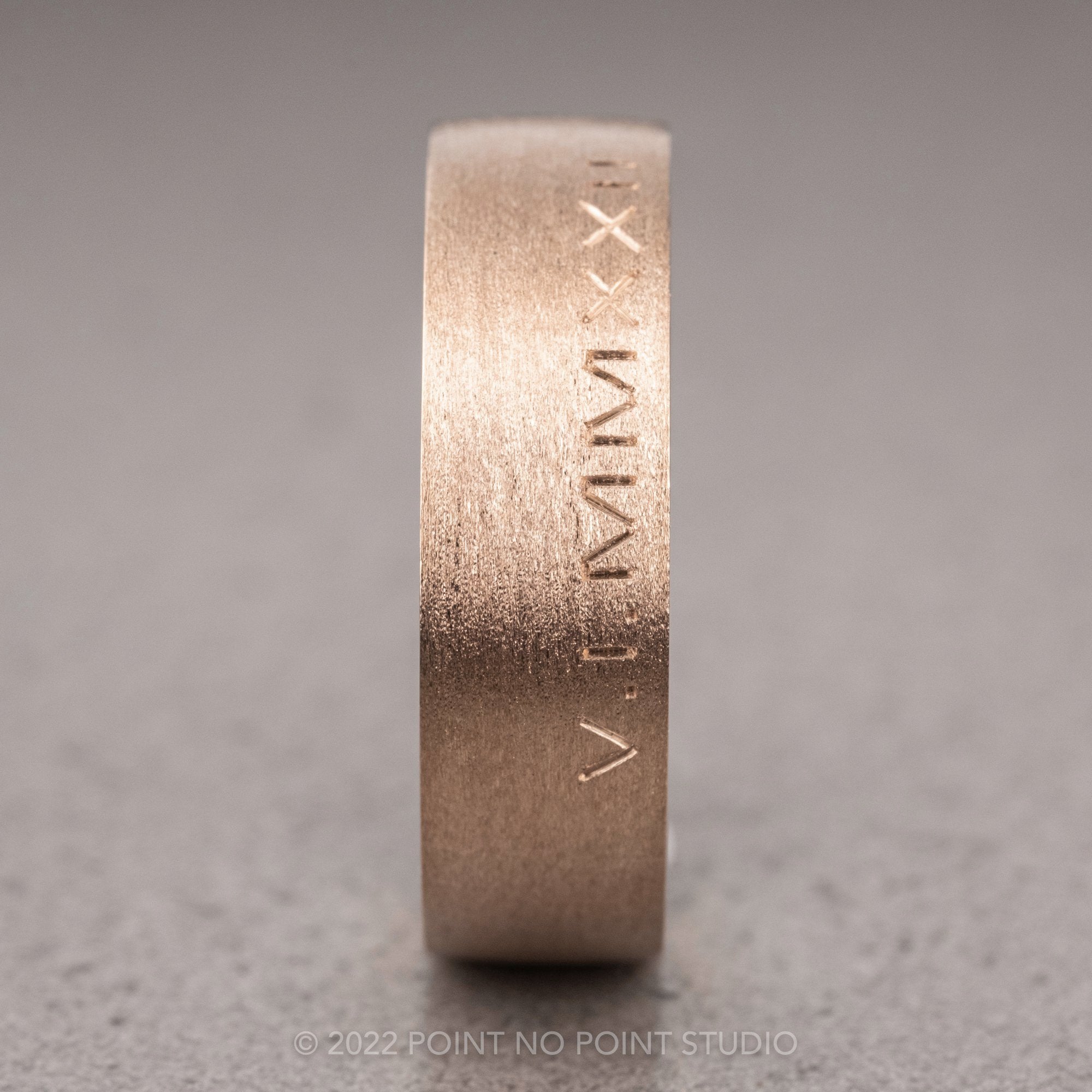 6mm 14K Peach Gold Mens Wedding Band, Roman Numeral Matte