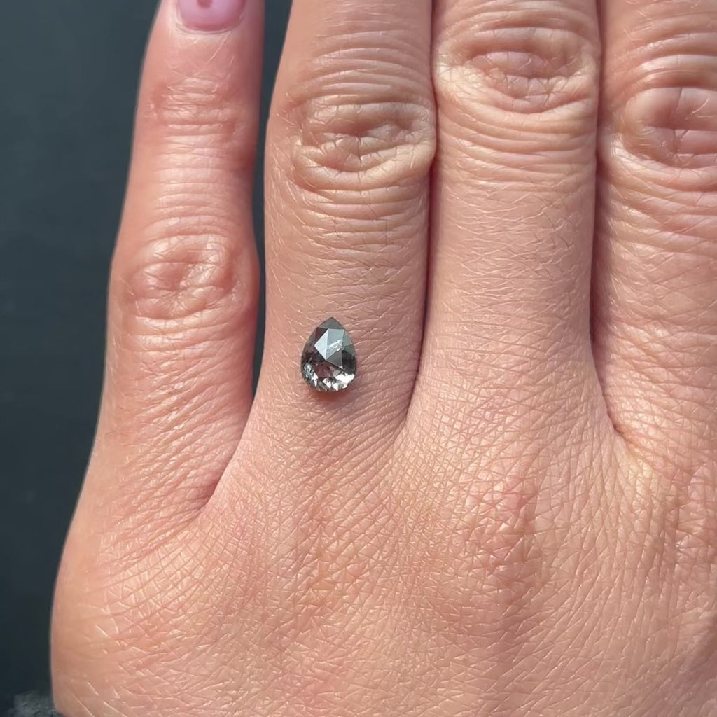 .88 Carat Black Speckled Rose Cut Pear Diamond