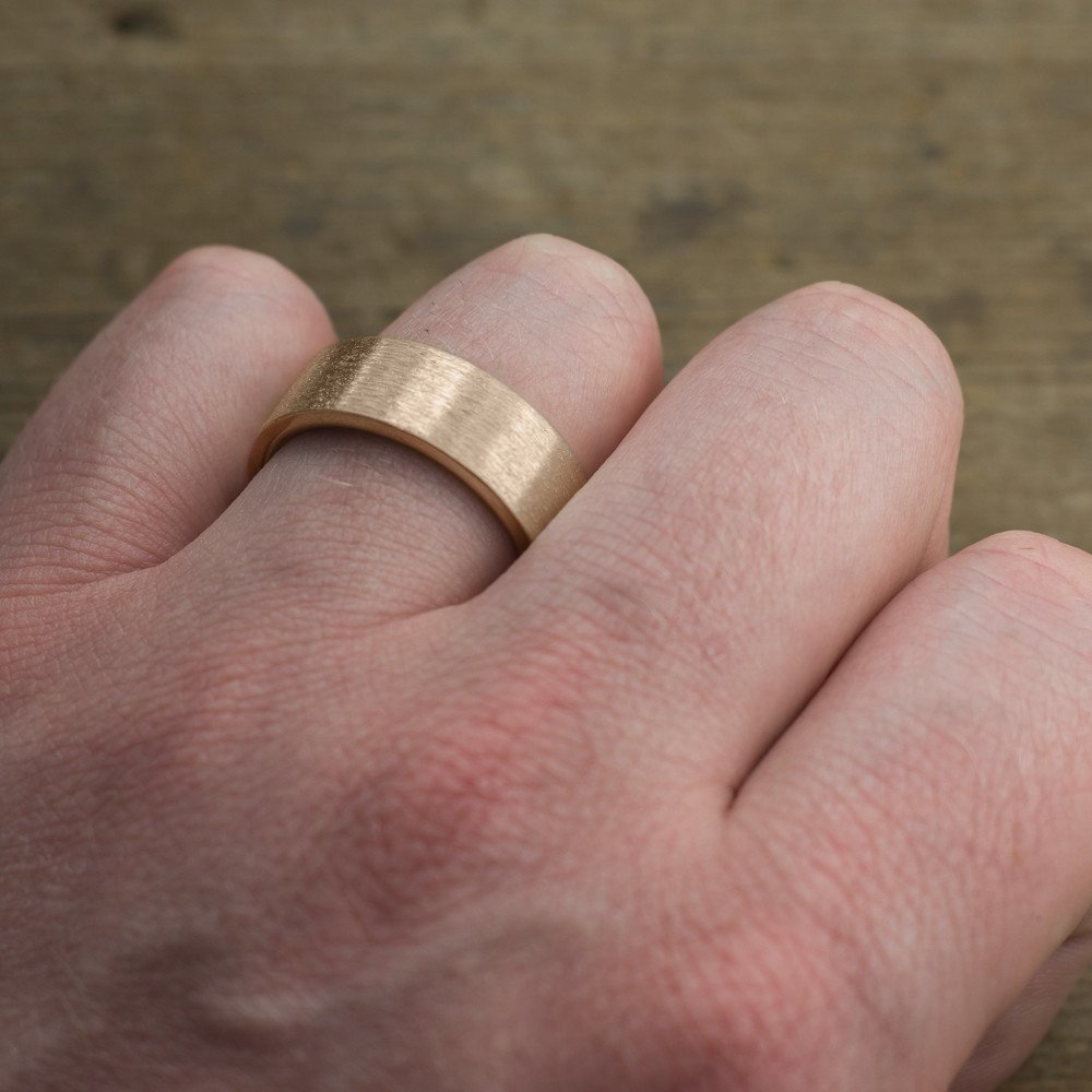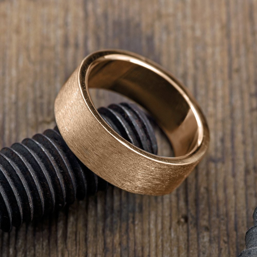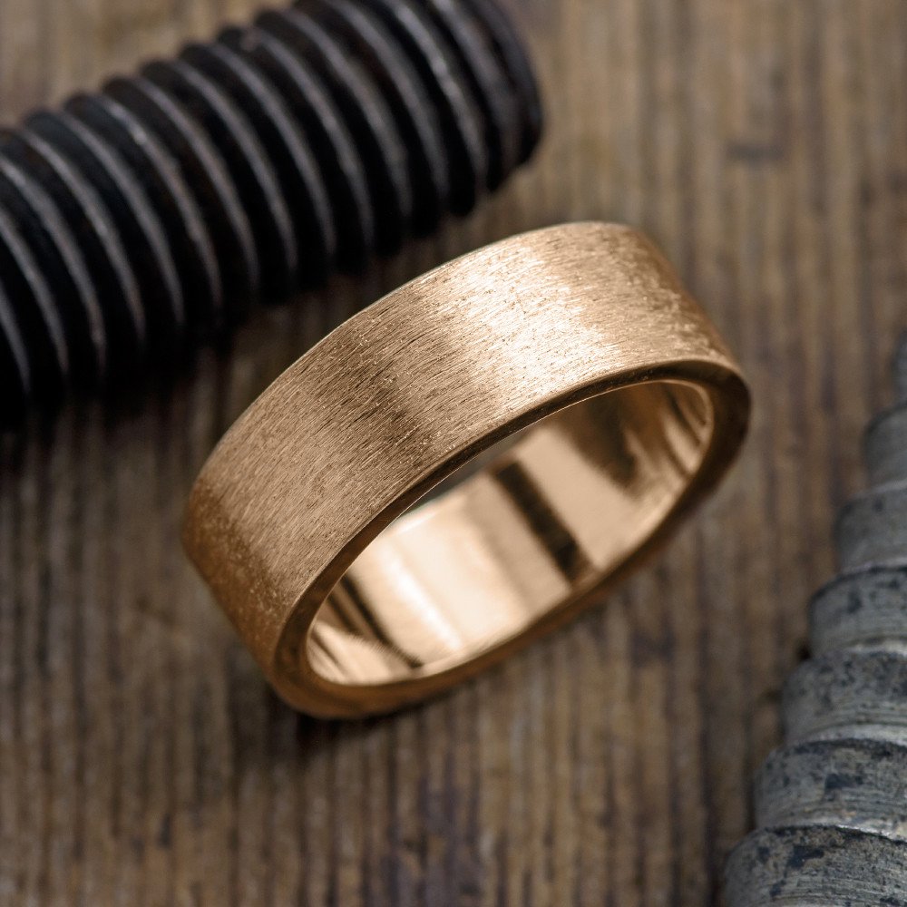 8mm 14K Peach Gold Mens Wedding Ring, Brushed Matte
