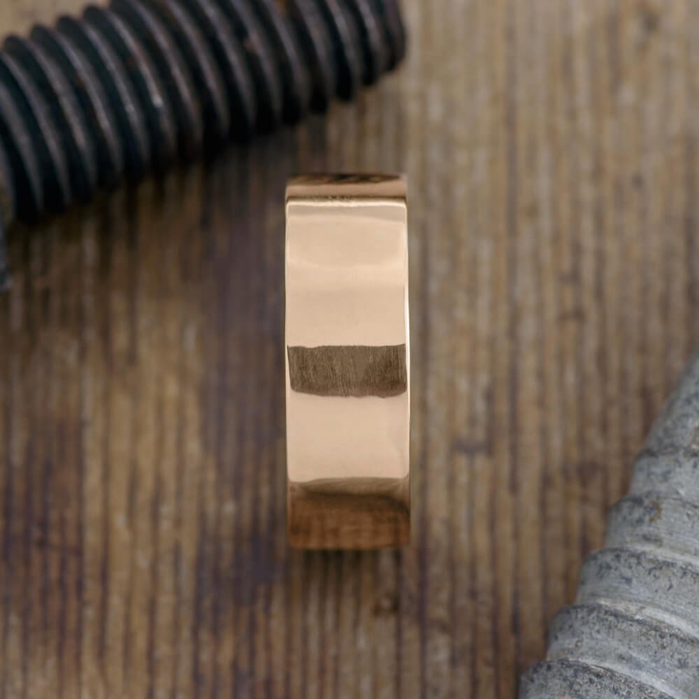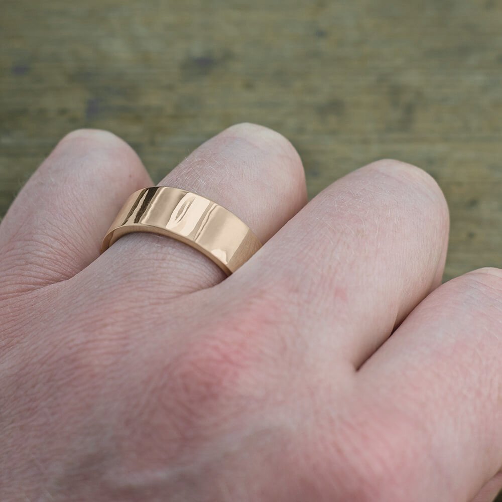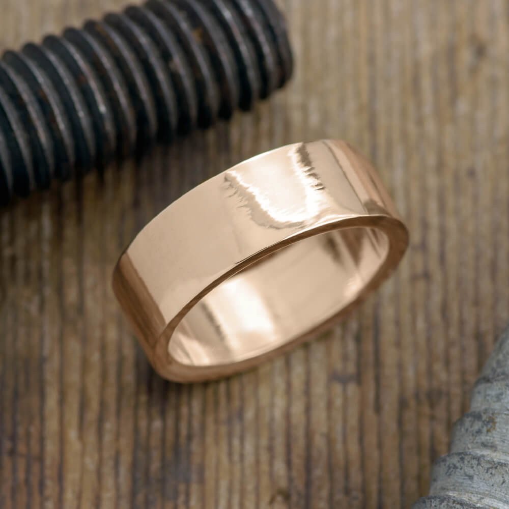 8mm 14k Peach Gold Mens Wedding Band, Polished