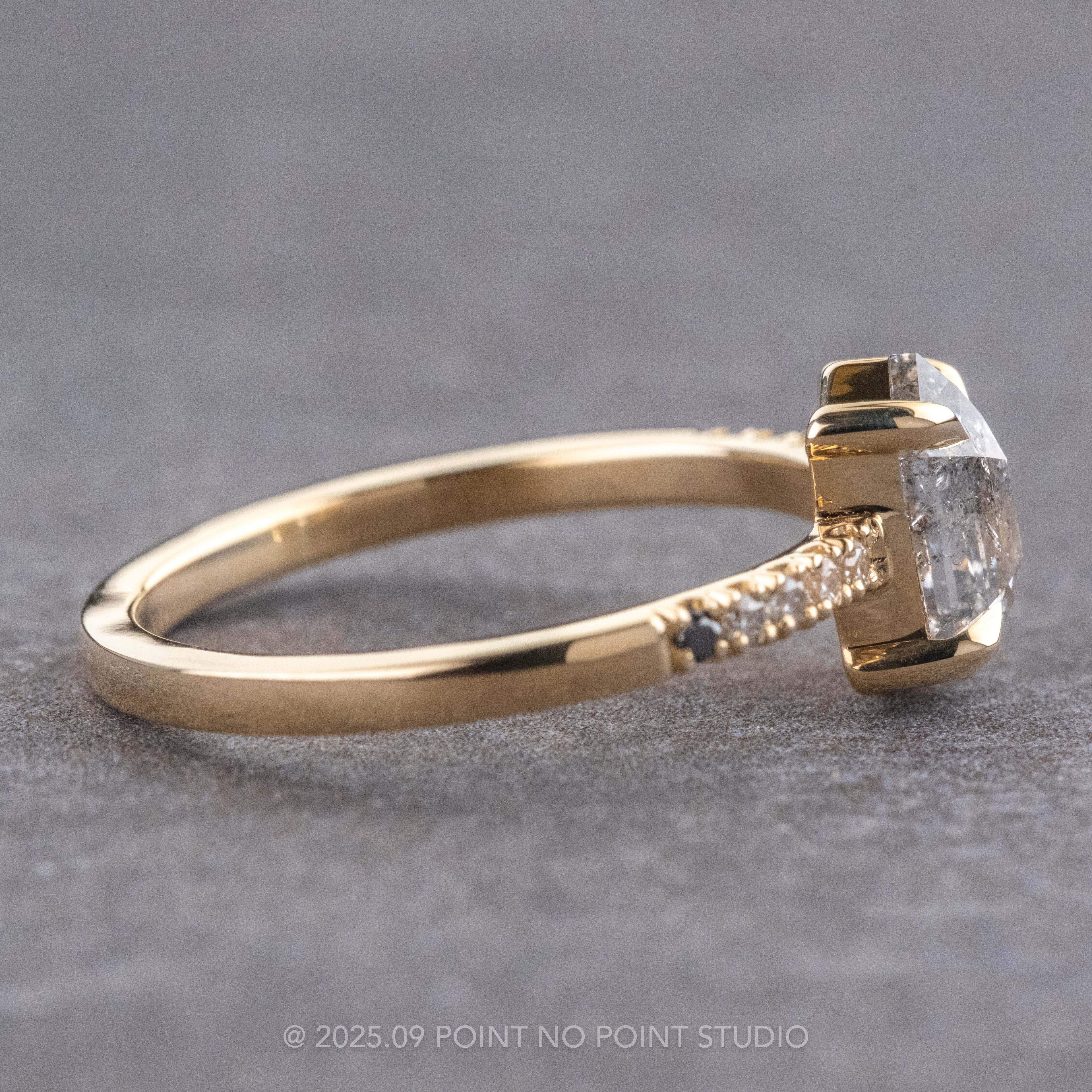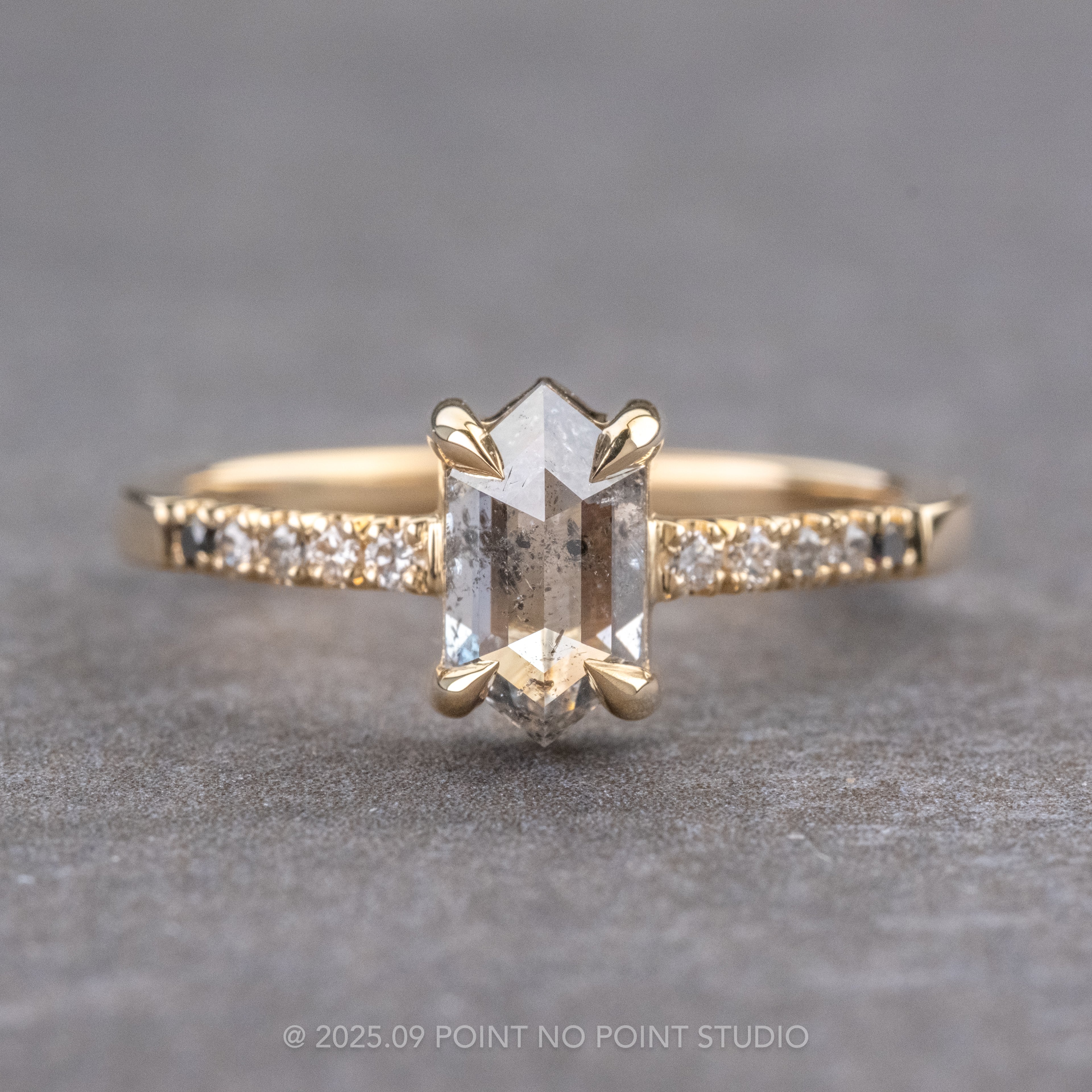 .97 Carat Salt and Pepper Hexagon Diamond Engagement Ring, Ombre Jules Setting, 14K Yellow Gold