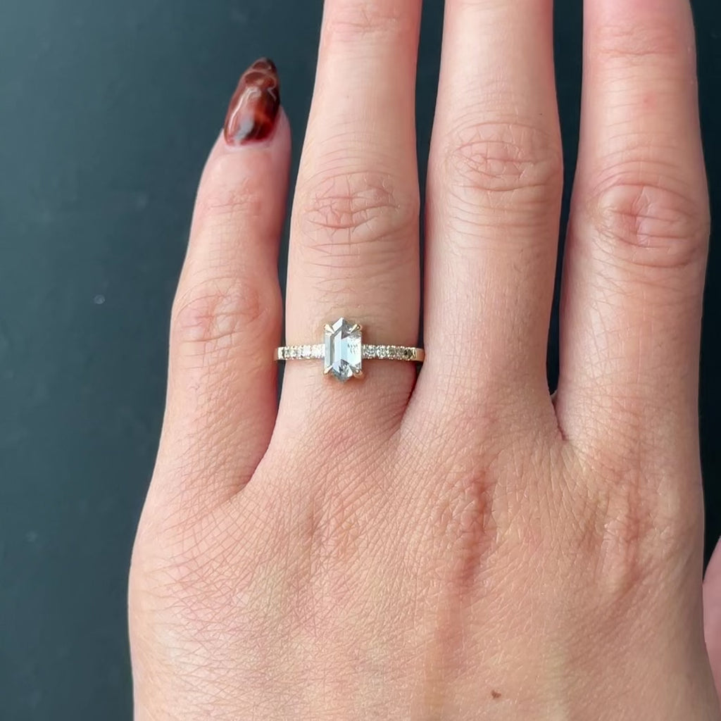 Salt and Pepper Hexagon Diamond Engagement Ring