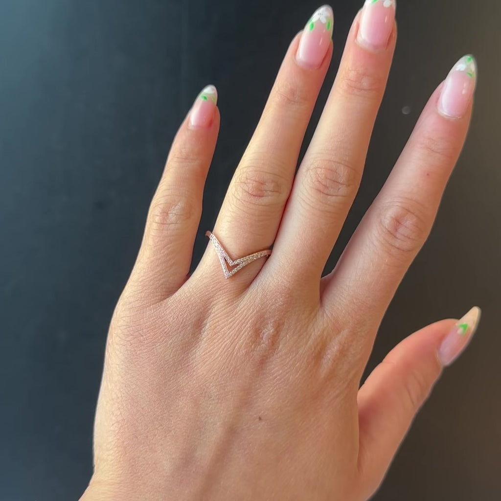 A hand crafted diamond V shaped wedding band to be worn alone, stacked in multiples, or to match any number of engagement rings!