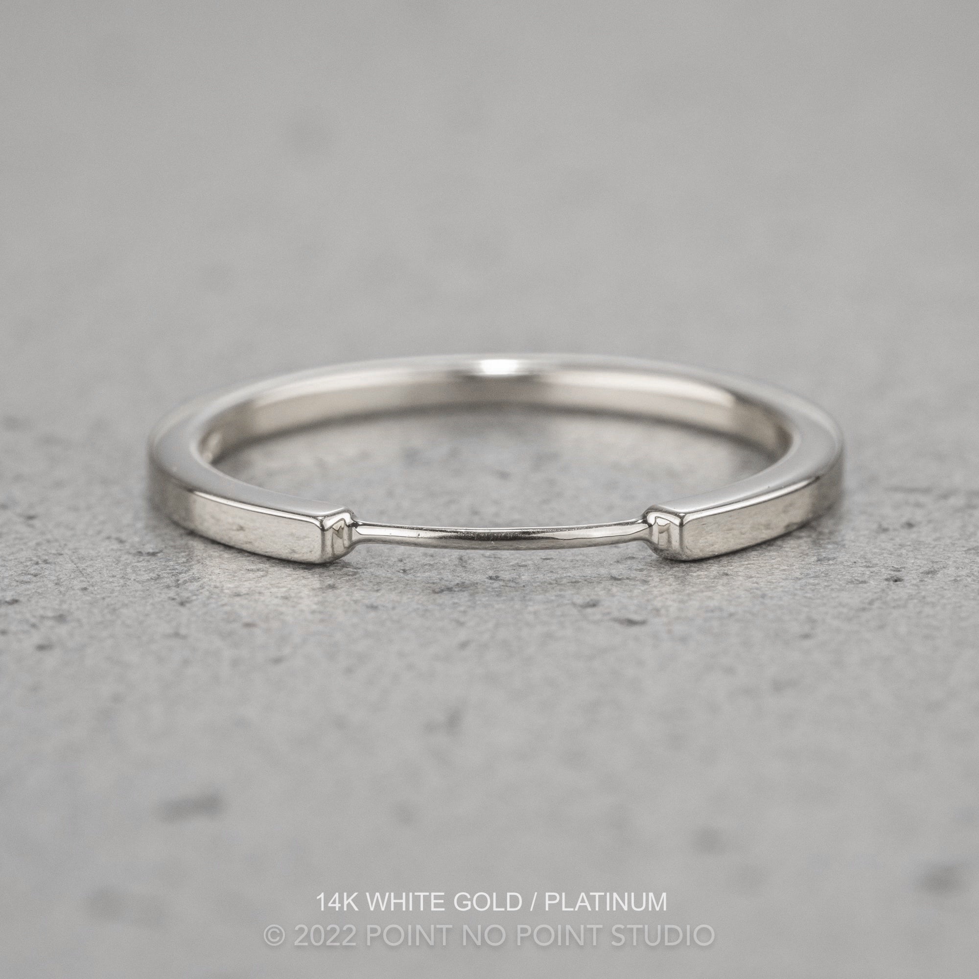 Our cuff designs were made with low-profile engagement rings in mind - the cuff satisfies the look of a straight across wedding ring that typically is not able to slide under a low-profile setting.