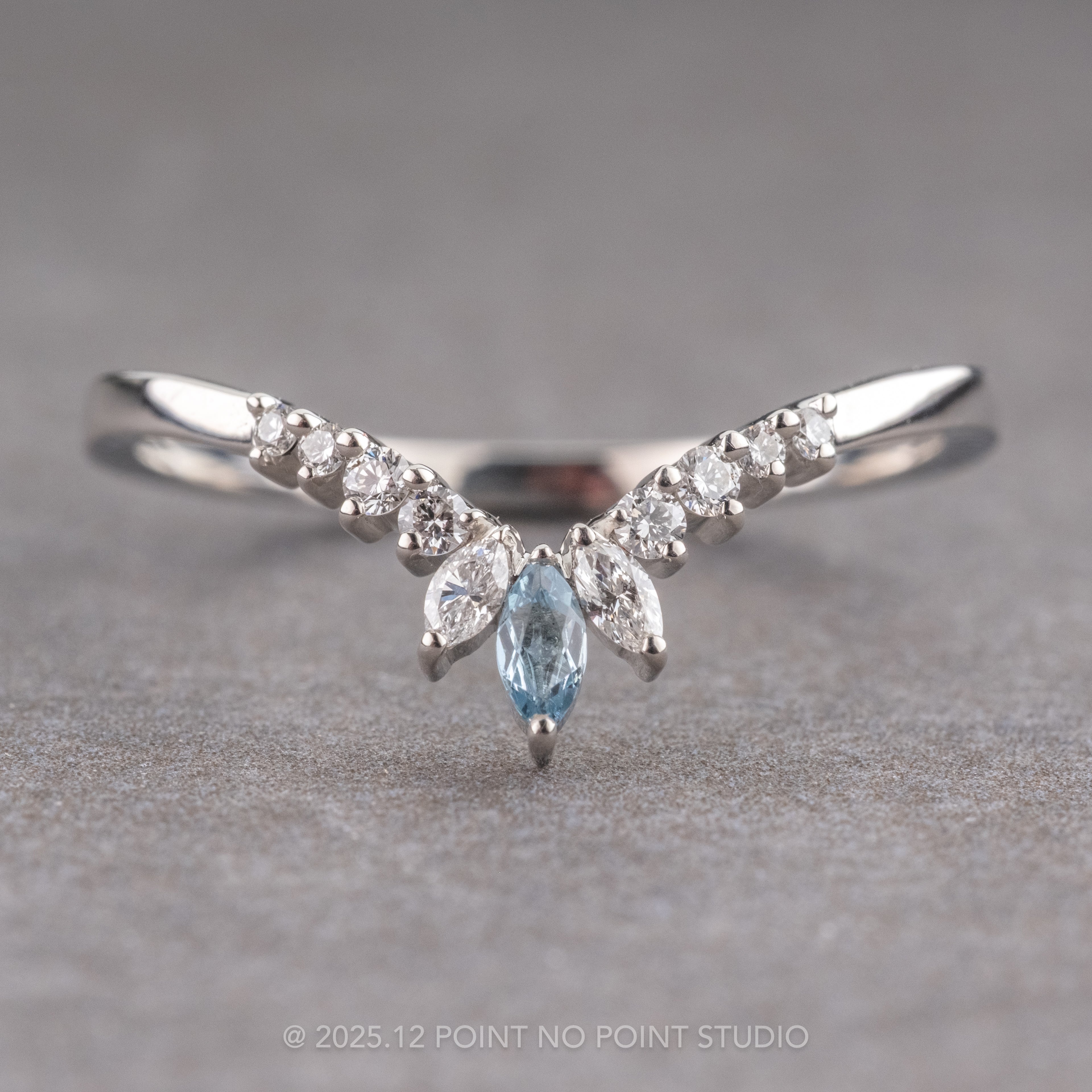 Marquise Aquamarine and Diamond Wedding Band, Small Cleo Setting, Platinum