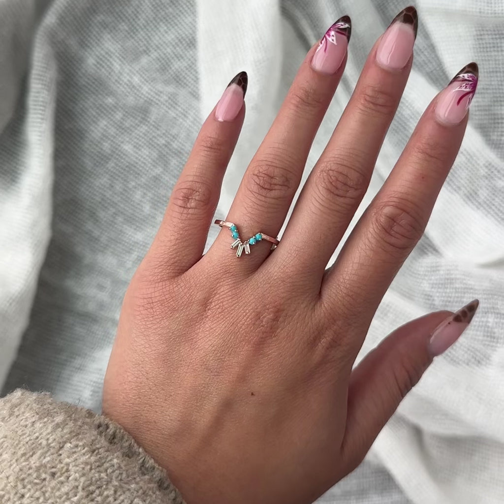 Turquoise And Diamond Basket Contour Band, Stella Setting, 14K Rose Gold