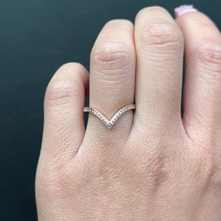 An elegantly enhanced version of our classic Vivian wedding ring with hand engraved ornate detailing. This v-shaped wedding band can be worn alone, stacked in multiples, or to match any number of our PNPS engagement rings!